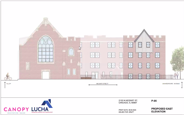 Church leaders have teamed up with affordable housing developer LUCHA on the effort to transform the 92-year-old church at 2122 N. Mozart St. into a 22-unit affordable housing complex. If everything goes according to plan, construction would begin next summer.