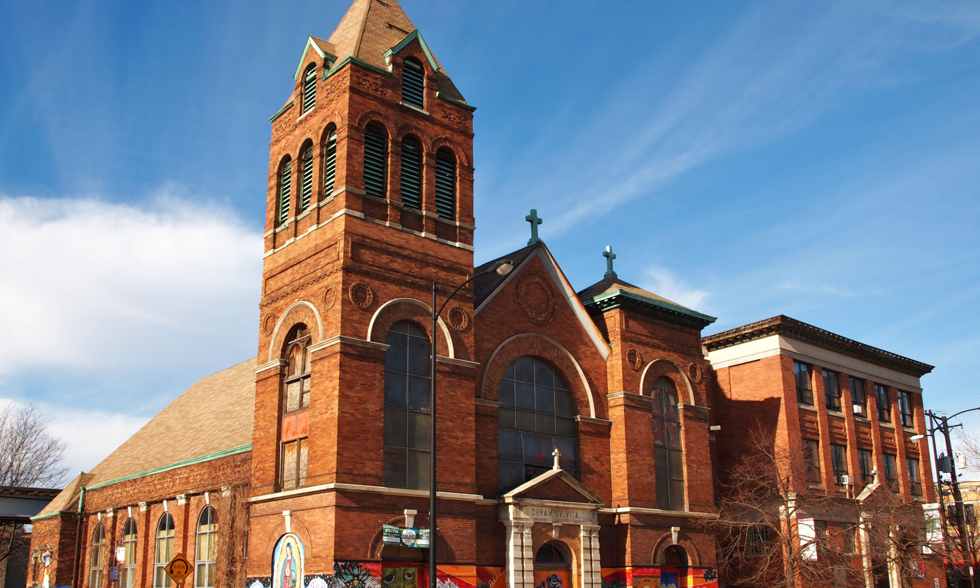 The St. Vitus Church and Campus has been a proud reflection of the local community since its founding in 1888. St. Vitus has been a staple within the community during its multiple uses. The rectory and the school continued to serve The Resurrection Project (TRP) and the community even after an interior fire at the church. This redevelopment will once again bring new life to the St. Vitus Church, rectory and school. We plan to embrace the historic architectural components of the site, along with the community art that has added another layer to the existing buildings.